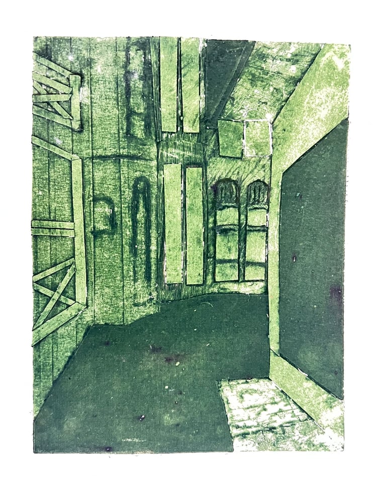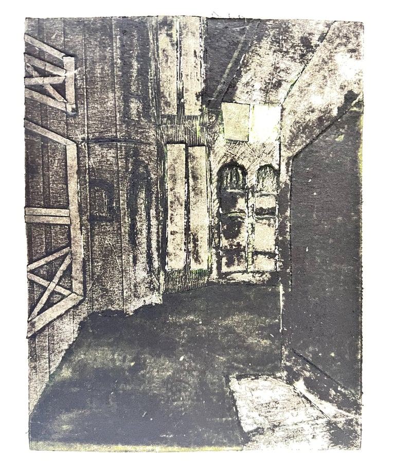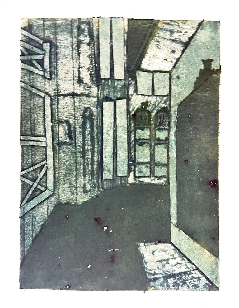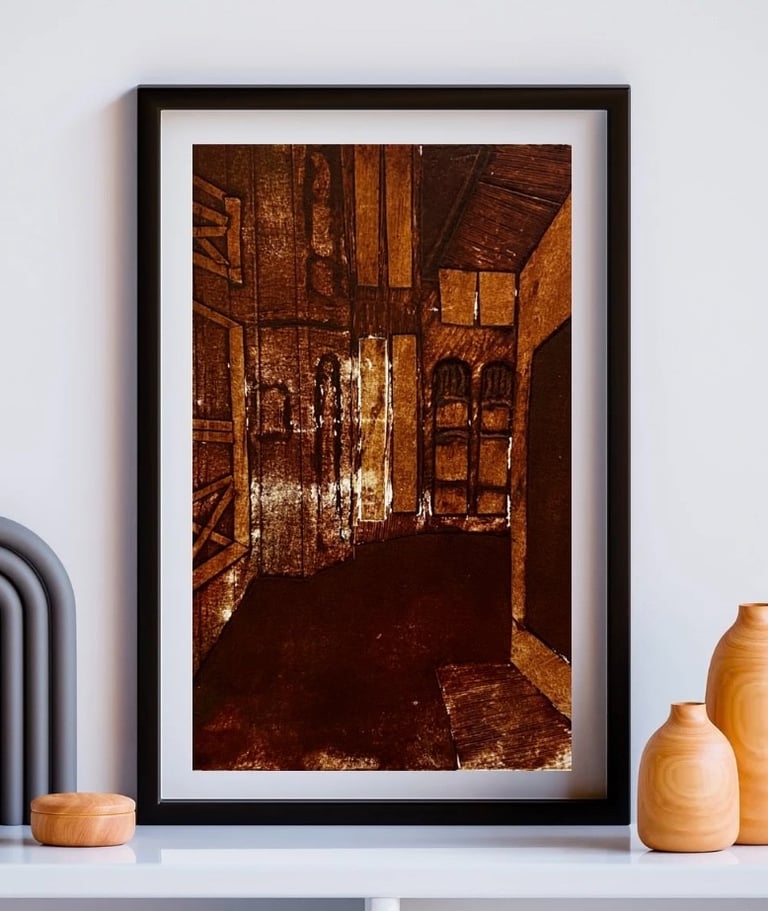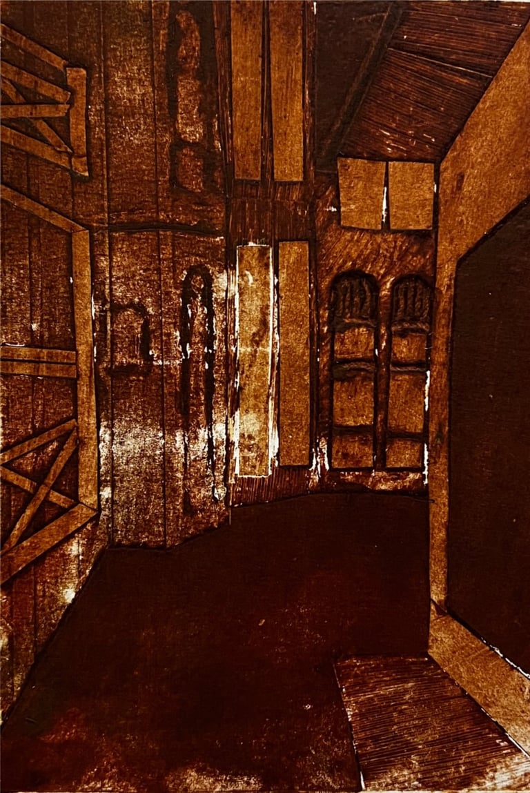 I created a collage Collography by building up layers of textured materials such as fabrics, threads, wooden sticks, leaves and textured paper onto a hard paper. I then inked it and printed it onto the printing sheet capturing the intricate textures and patterns of the collage in my prints.