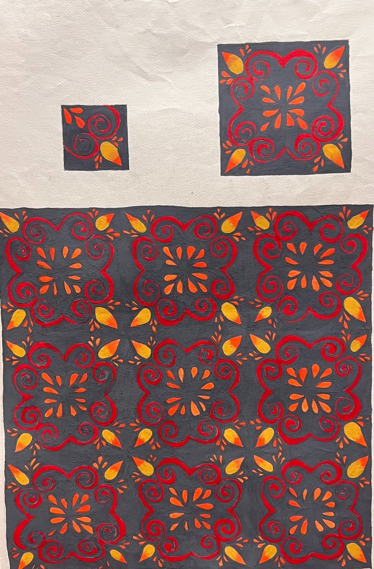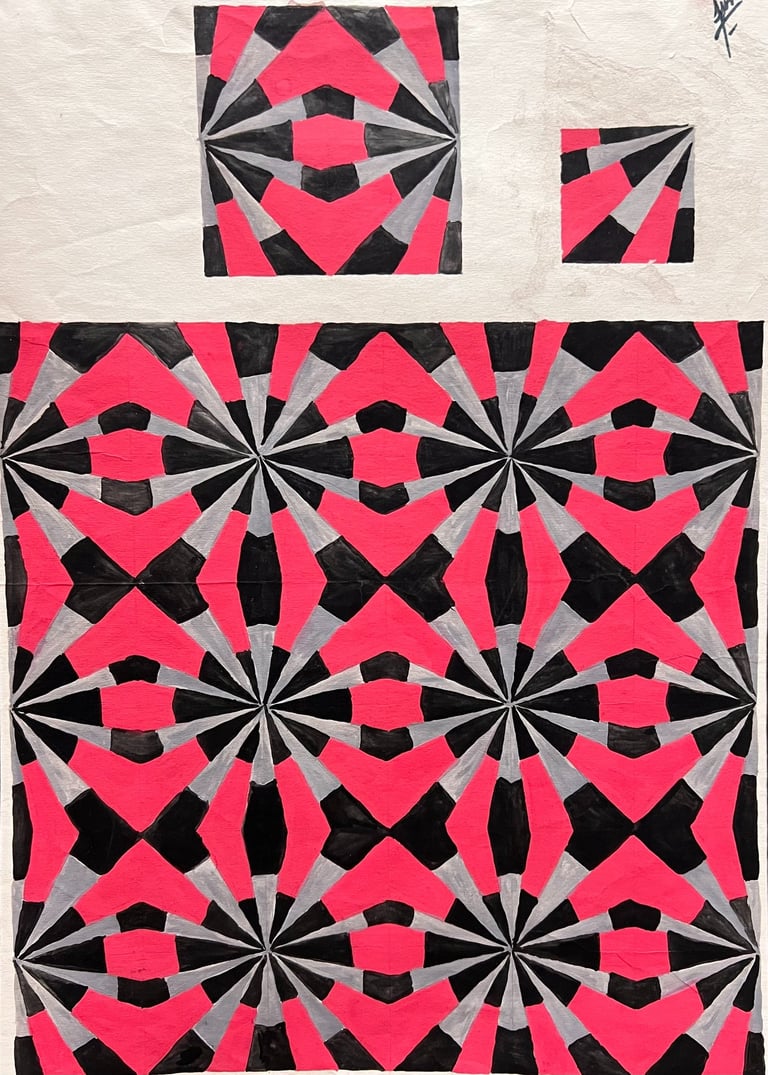 A collection of my hand painted repeatable pattern designs, watercolor mixed with etching, acrylic pouring and monochrome drawings.