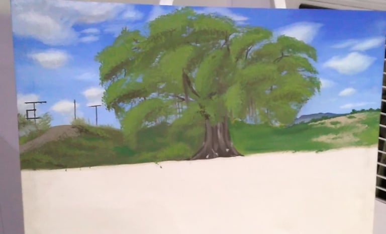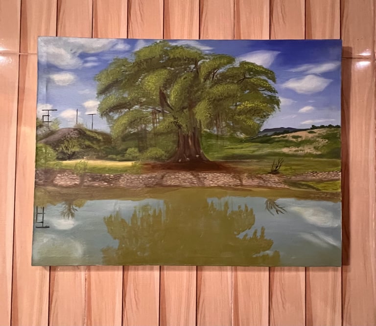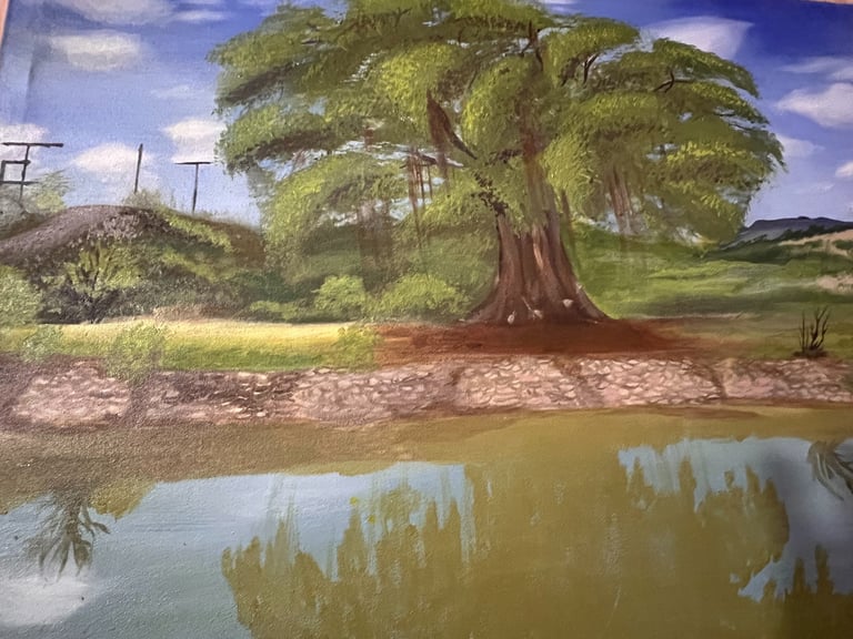 Landscape oil painting composition.