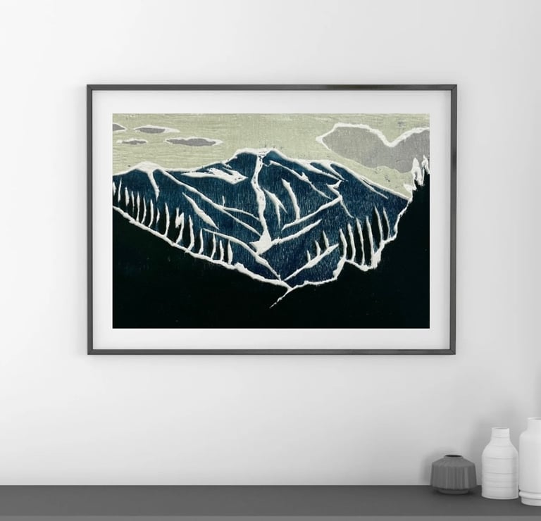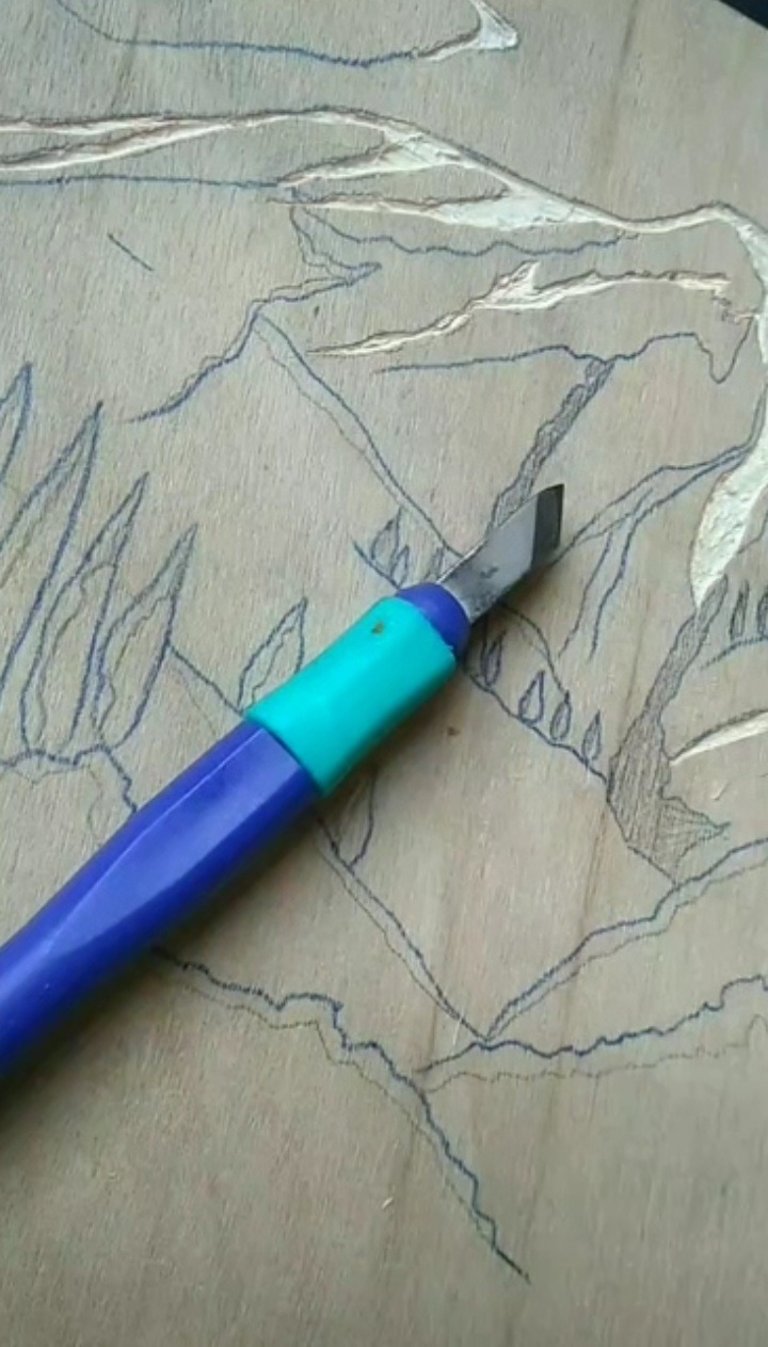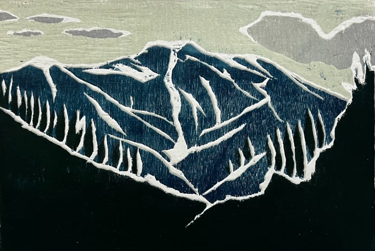 I created a woodcut prints by carving a design into a wooden plate, printing it once and carving out the printed part applying alternate colors to create an imagery. Repeating this process multiple times resulted in a detailed landscape print.